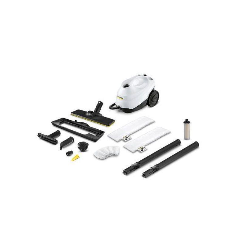 30 seconds of heat-up time allow for uninterrupted cleaning: The SC 3 EasyFix Premium steam cleaner with carpet glider, permanently refillable water tank, descaling cartridge, floor nozzle EasyFix and accessories.