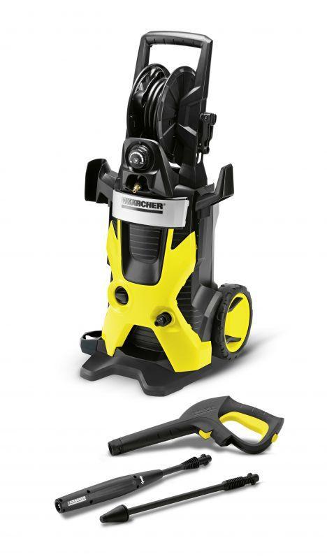 The "K5 Premium" high-pressure cleaner with water-cooled motor and hose reel is designed for ease of use. Ideal for moderate dirt, e.g. large vehicles, stone walls and bicycles.